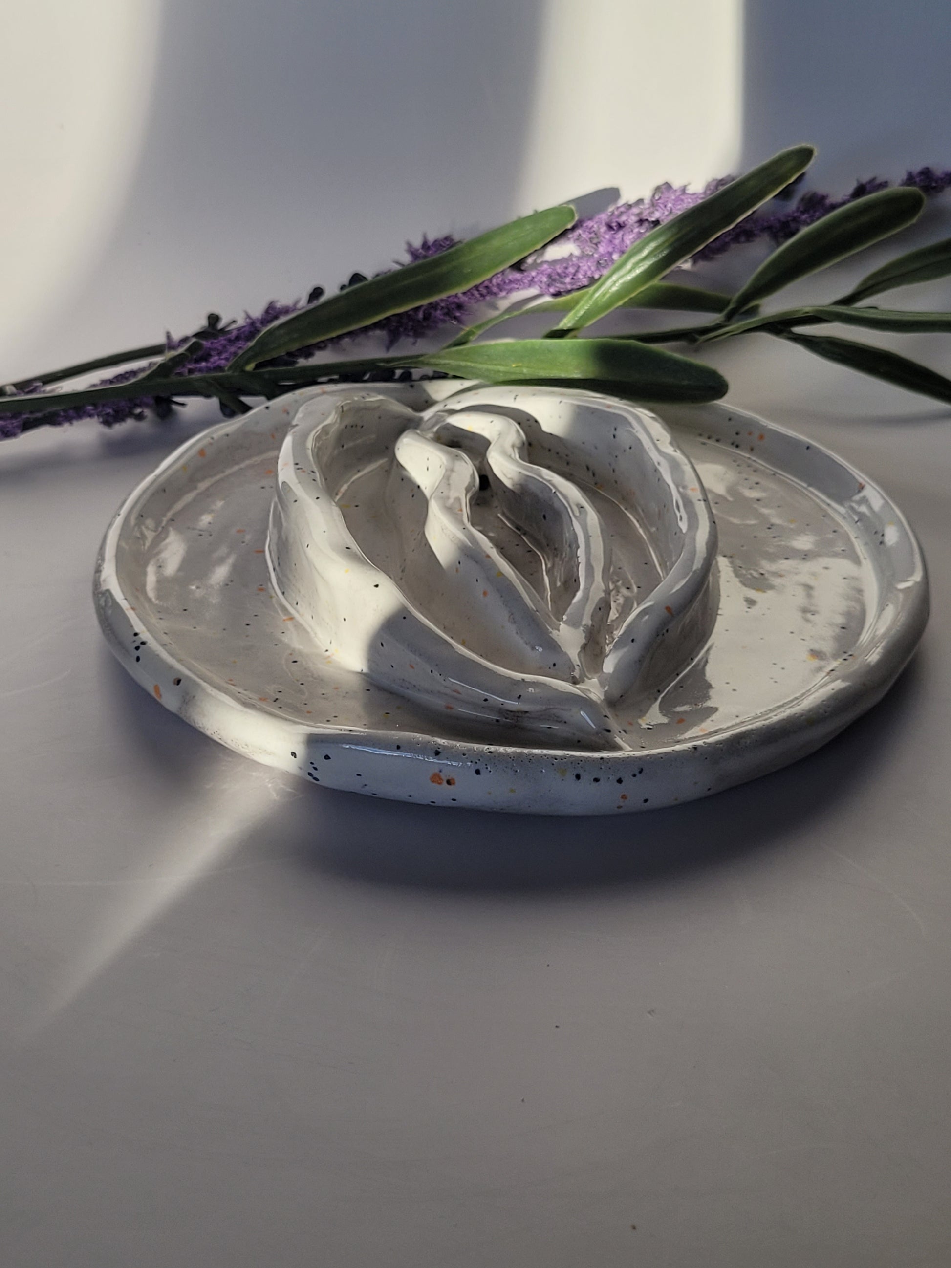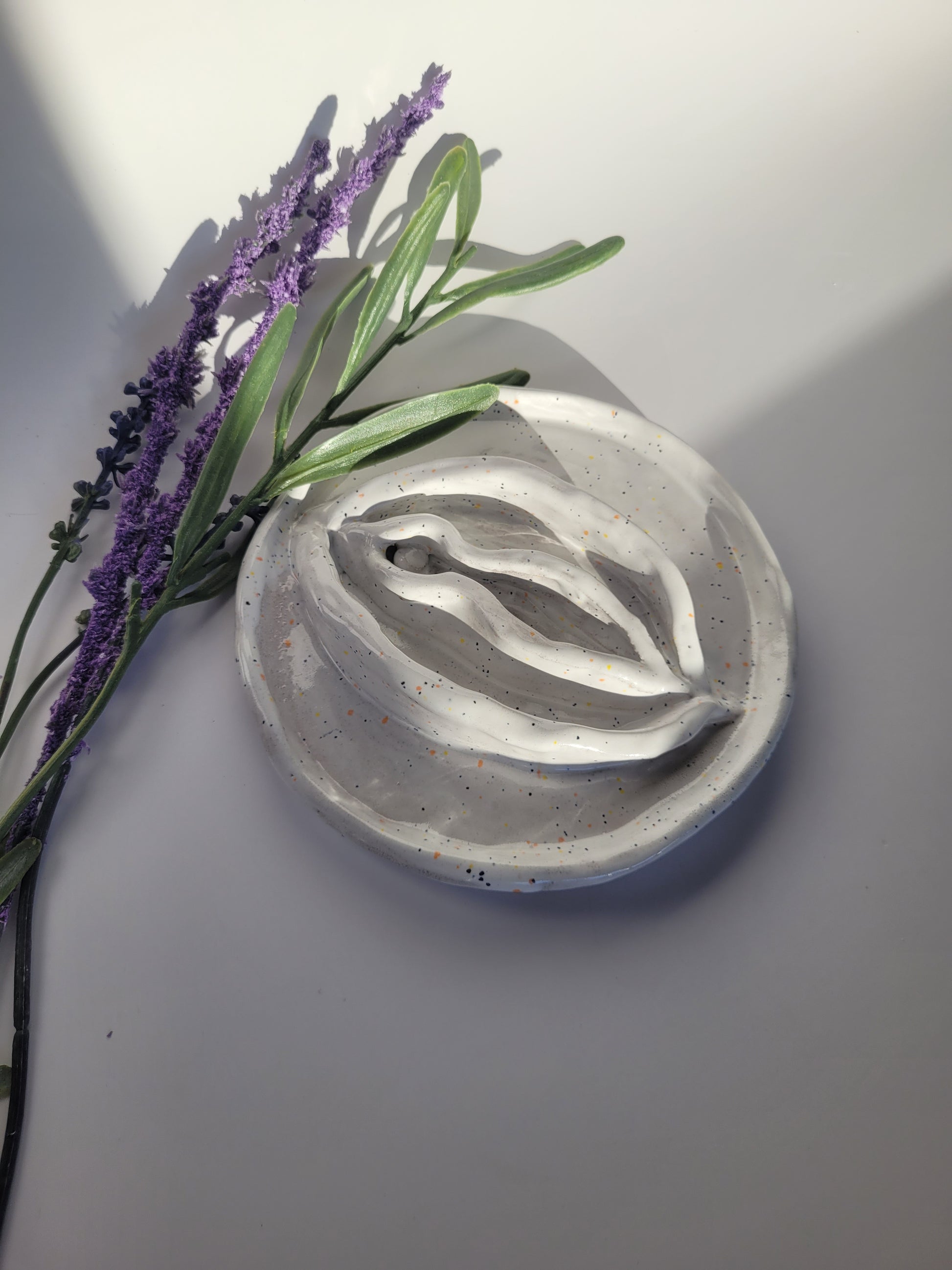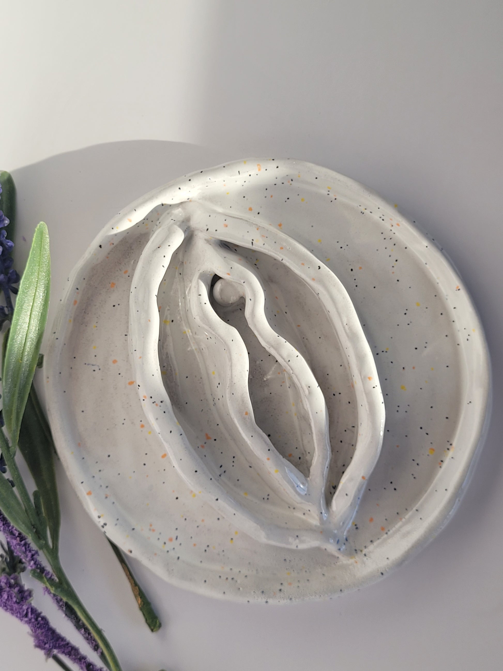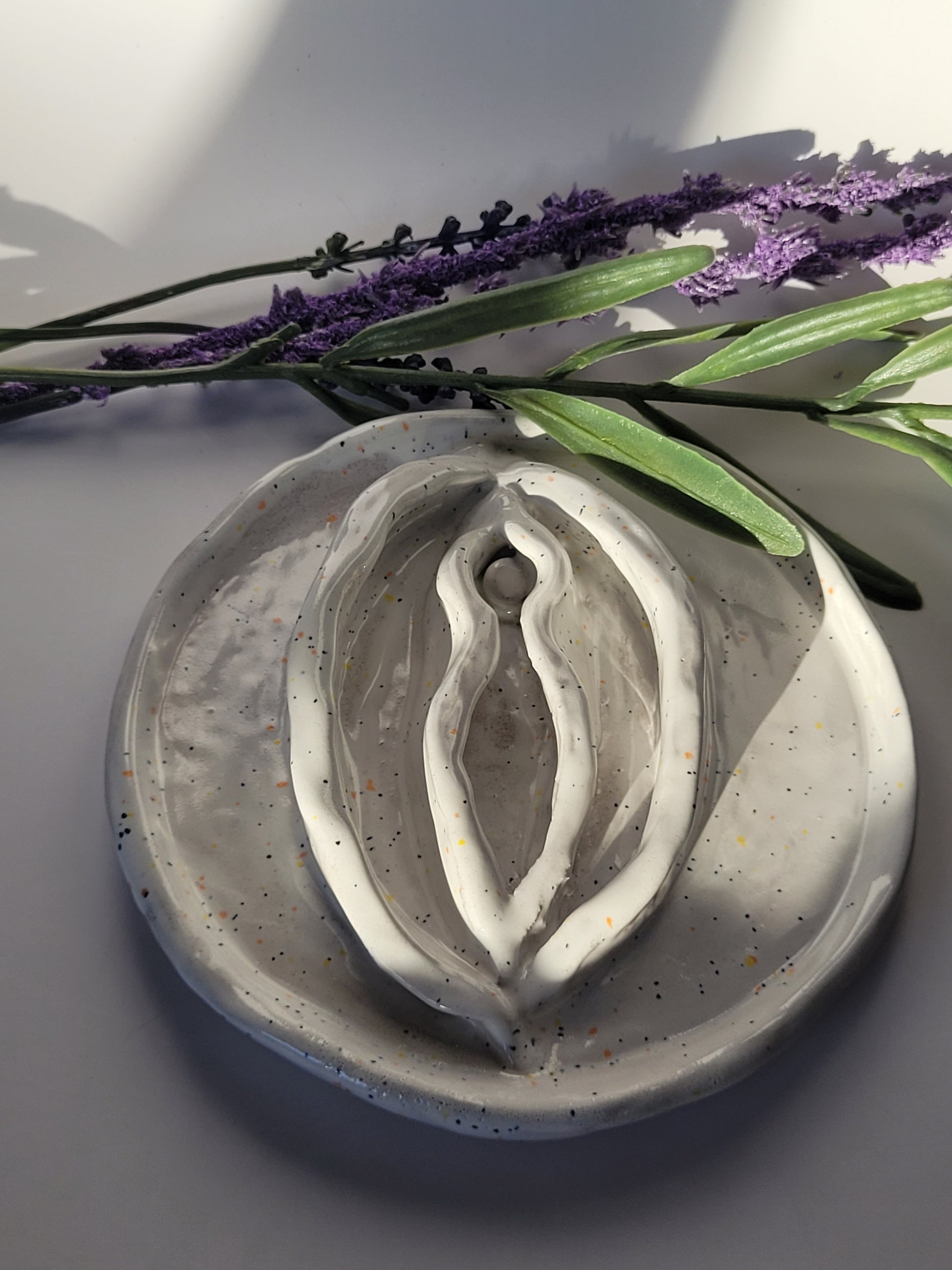 Vulva aus Ton, handgefertigt.
